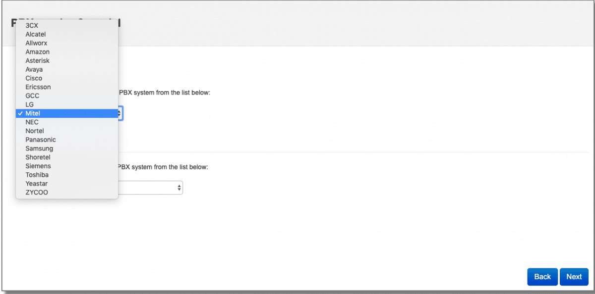 After configuring you’re, Mitel clicks on the Next button on the PBXDom wizard.